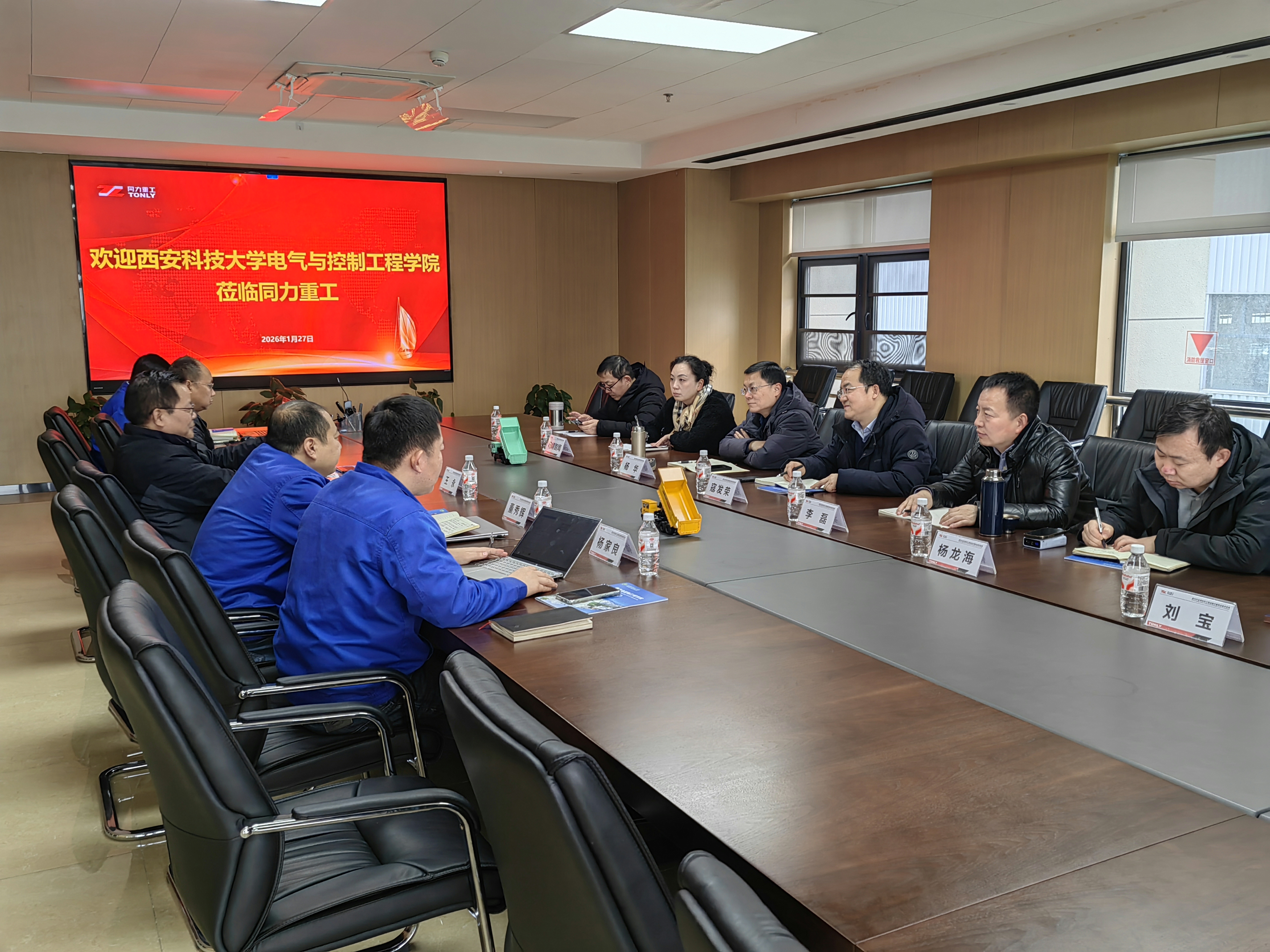 为进一步加强校企协同,深化科教产教融合,提升学生就业质量,1月27日上午,电气与控制工程学院党委书记杨华、院长寇发荣、党委副书记马婧智闻、电气工程系主任李磊、自动化系主任张玉峰、电子科学系主任杨龙海、测控技术系党支部书记刘宝等一行7人赴陕西同力重工股份有限公司开展访企拓岗合作交流活动。陕西同力重工股份有限公司总工程师王永、副总经理陈朝华、新能源智能科技公司副总经理董秀辉、人力资源总监赵佳华、科技管理部主管杨家良等参加交流座谈会。