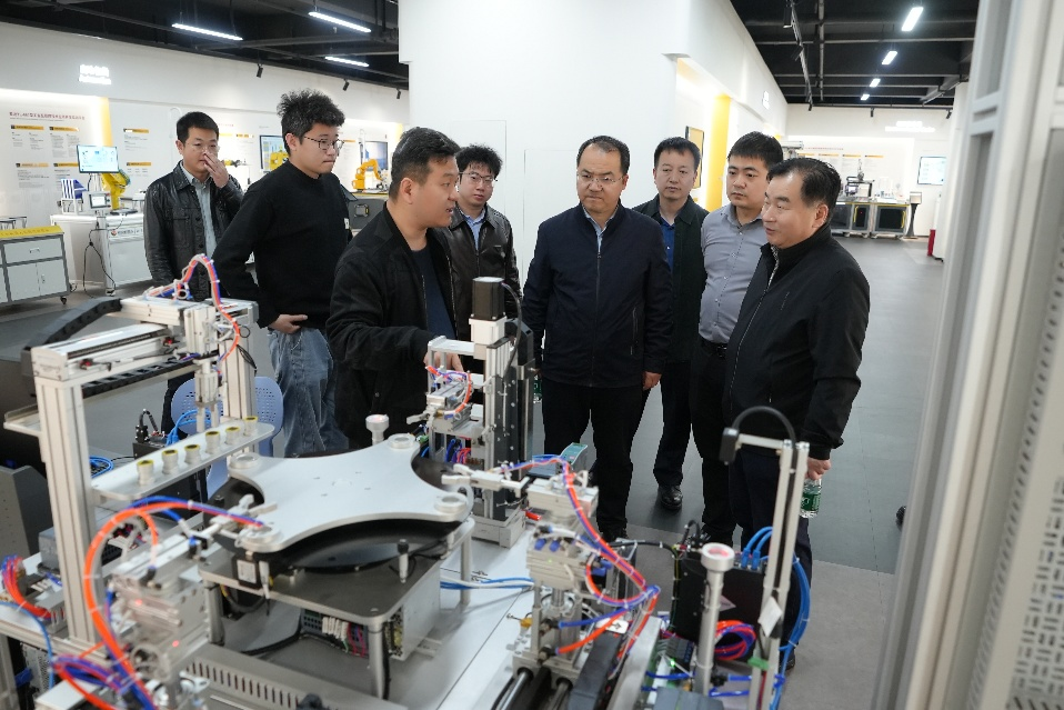 4月1日下午,学院一行前往亚龙智能装备集团股份有限公司开展调研交流。集团总经理陈传周、副总经理吕子乒等热情接待,并陪同实地考察了工业机器人实训系统、智能制造集成系统等先进设备的应用场景。校企双方就人才培养模式创新、实训基地共建、师资能力提升等议题展开深入研讨,并就由西安科技大学承办、亚龙智能装备集团股份有限公司等协办的第五届全国高校电气类专业青年教师实践教学设计创新大赛总决赛暨2026年全国高校电气工程教育学术年会的筹备工作、赛事场地安排等事项达成高度共识。