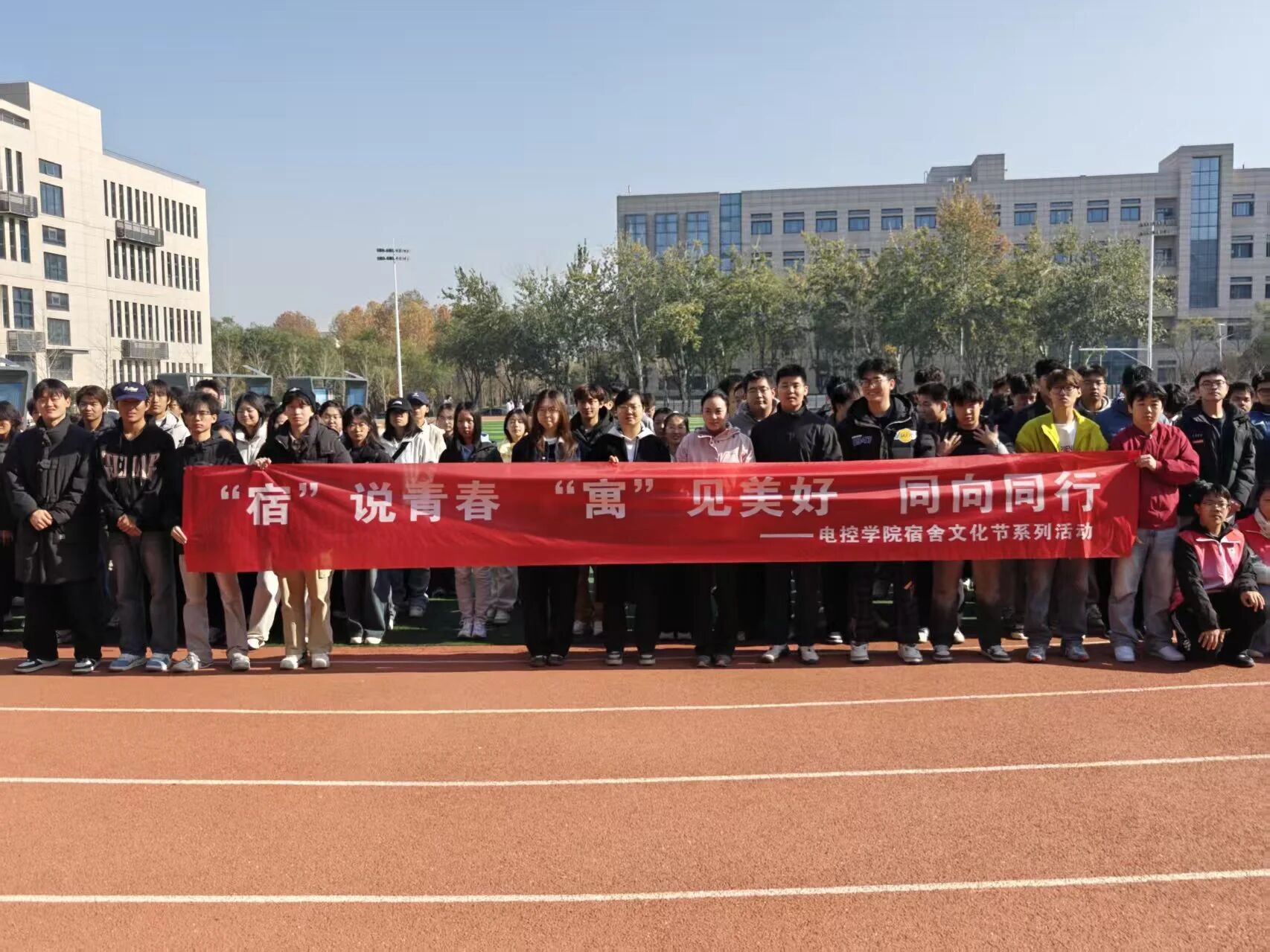 为深化宿舍文化建设,凝聚同窗情谊,增强团队协作精神,电控学院于11月20日在学校操场成功举办了2025年“宿舍文化节”活动。参加本次活动的有电控学院党委副书记马婧智闻、团委副书记丁元、2025级辅导员高子雯、赵海宁以及参赛学生。