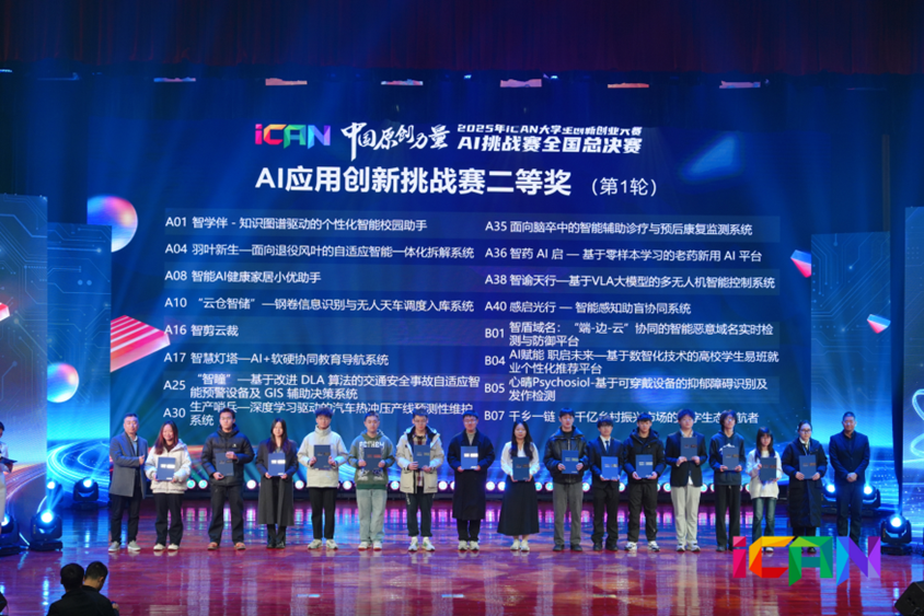 12月28号,2025年iCAN大学生创新创业大赛AI挑战赛全国总决赛在无锡圆满落幕。电控学院学子凭借扎实的专业功底、创新的技术方案与出色的现场表现,从全国300余所高校的898个优质项目中脱颖而出,斩获国家级二等奖。